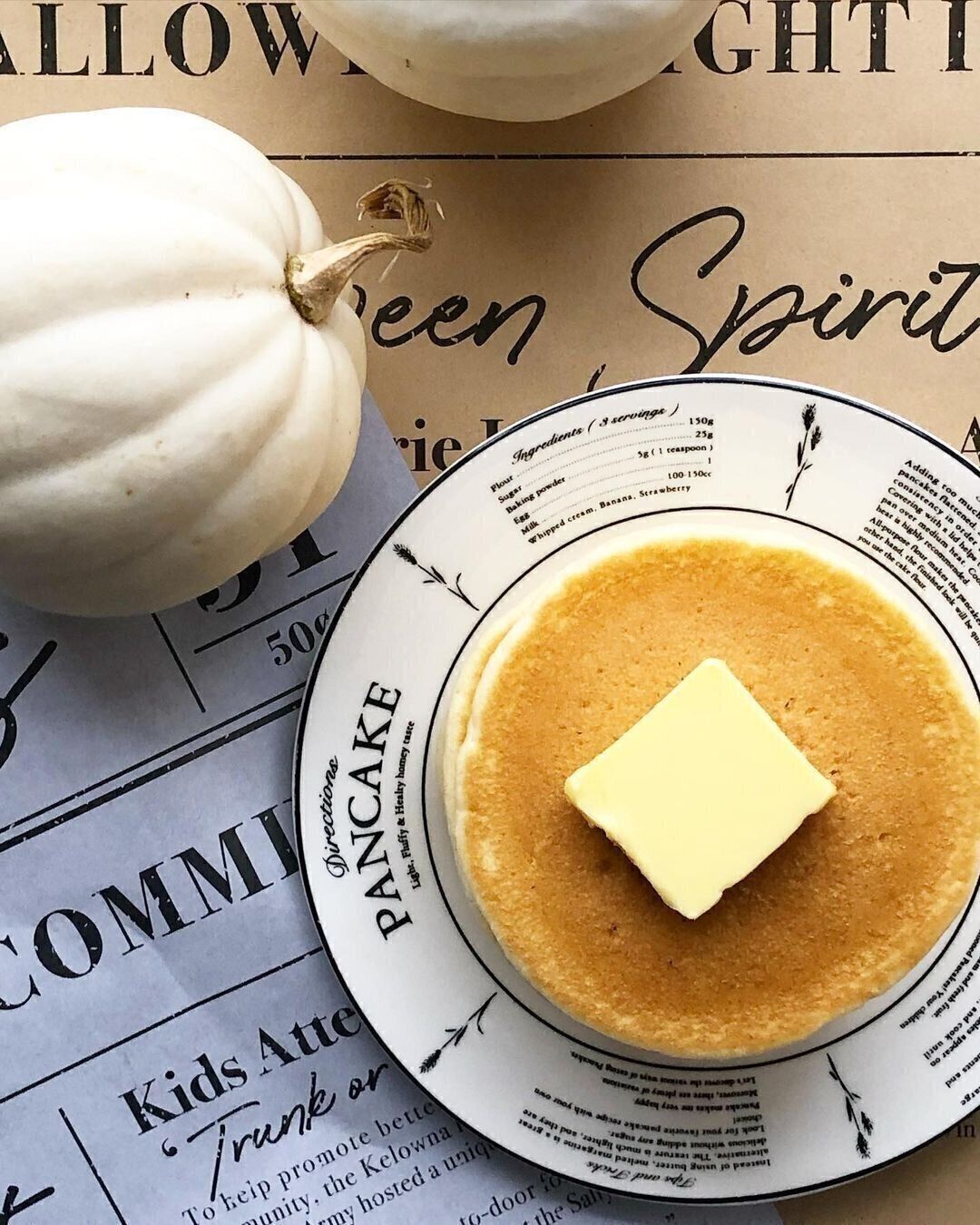 「PANCAKE」と大きく書かれた文字のデザインがおしゃれなケーキ皿。もちろん、パンケーキをのせるのにぴったりのサイズ感です。きれいに盛りつければ、自宅でカフェ気分を味わえるプレートが完成します。
