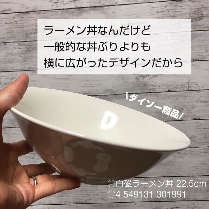 ラーメン用の器ですが、横に広がったデザインの「どんぶり」なので、カレーやガパオライス、パスタにも活用できそうですね。白磁のシンプルな色合いも、盛りつける料理を選びません。