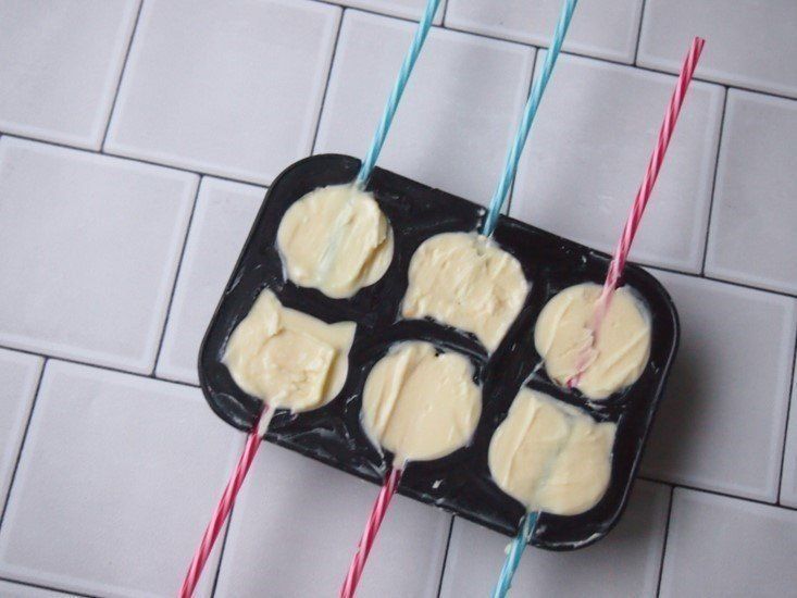 トレーに溶けたチョコレートを流し入れるだけでつくれるからとても簡単。子どもといっしょに手づくりが楽しめますよ。冷ますタイミングで、スティックもさしておきましょう。
