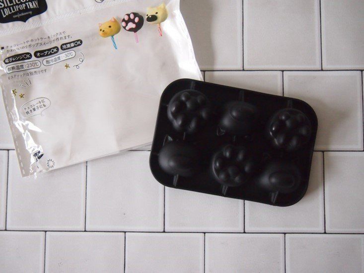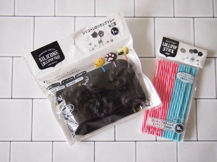 肉球とねこの愛らしいロリポップスイーツを、手軽に作ることができるキットです。電子レンジOK、オーブンOK、冷凍庫OKなのでつくれるスイーツの幅は広め。いっしょに「ロリポップスティック」(40本入りで100円)も買うことをおすすめです。