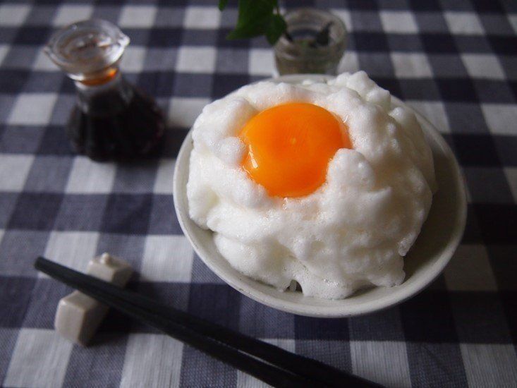 ごはんにメレンゲ、卵黄をのせれば一風変わったフォトジェニックな卵かけご飯もつくれます。