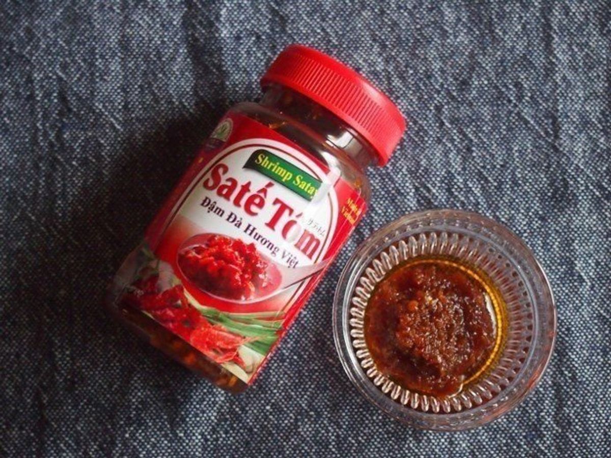 一時期かなりのブームだった食べるラー油。そのベトナムバージョンがカルディで買えます。その商品はサテ・トム298円(税込)。赤トウガラシ、レモングラス、ガランガル、ニンニク、乾燥エビ、ナンプラーなどが入っています。