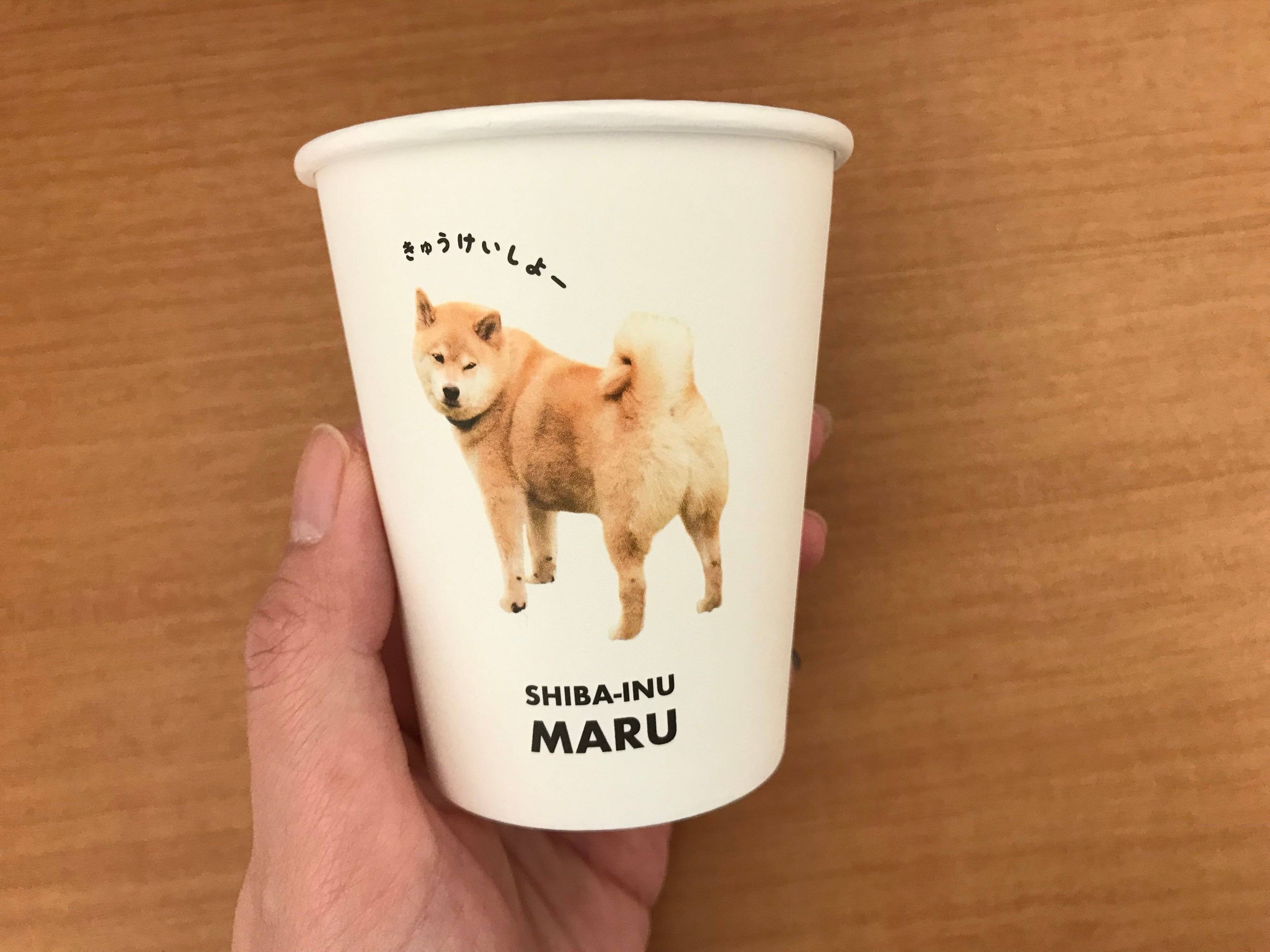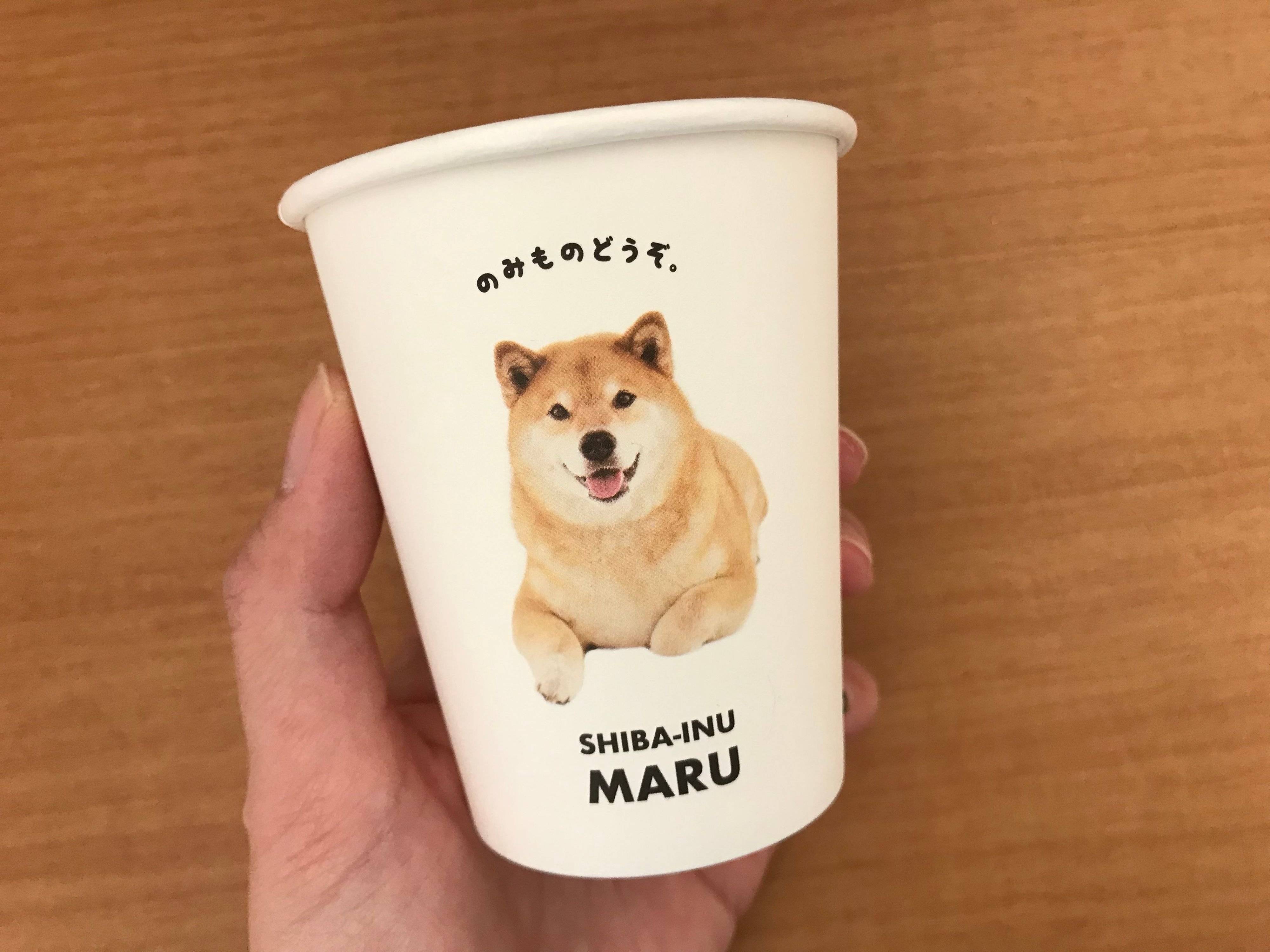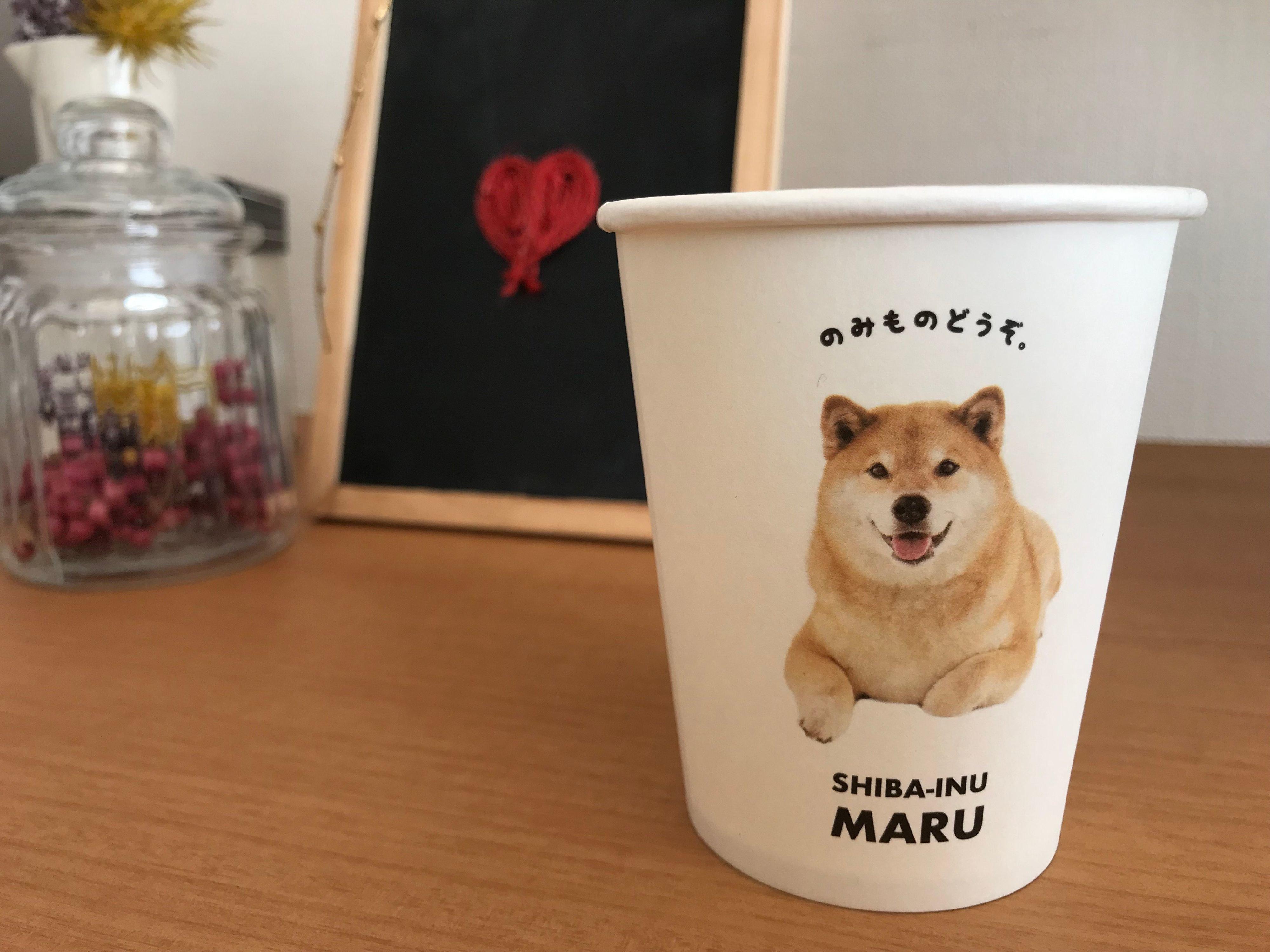 柴犬のまるちゃんが「のみものどうぞ。」とオススメしてくれる紙コップ。犬好きさんでなくても、こんなカップで飲み物を出されたら気持ちもほっこりしてしまいますね。