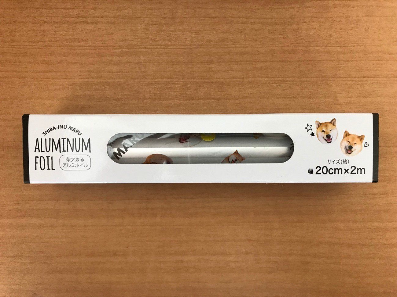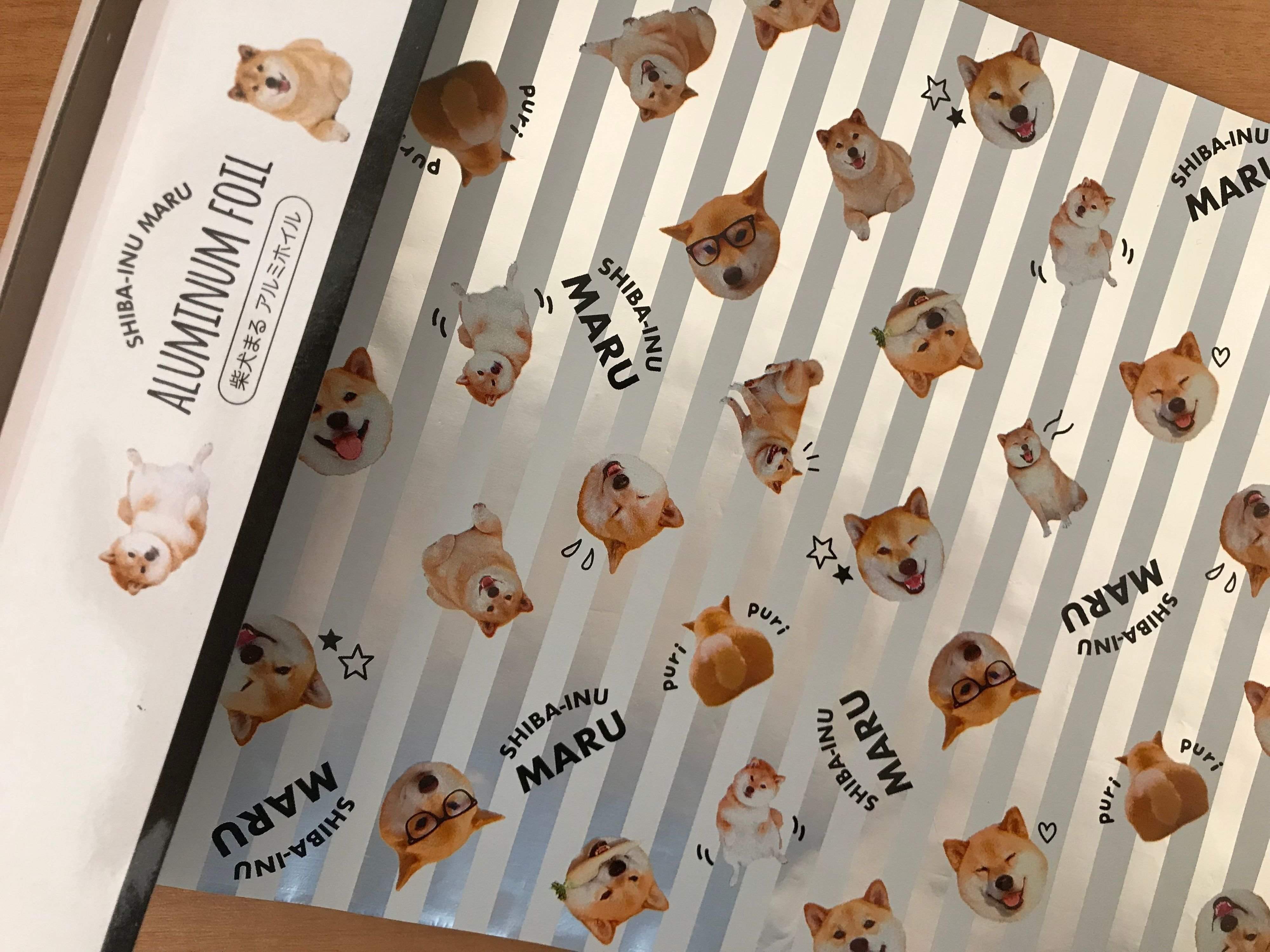 柴犬まるちゃんのアルミホイル。幅20cm、2m巻の商品です。