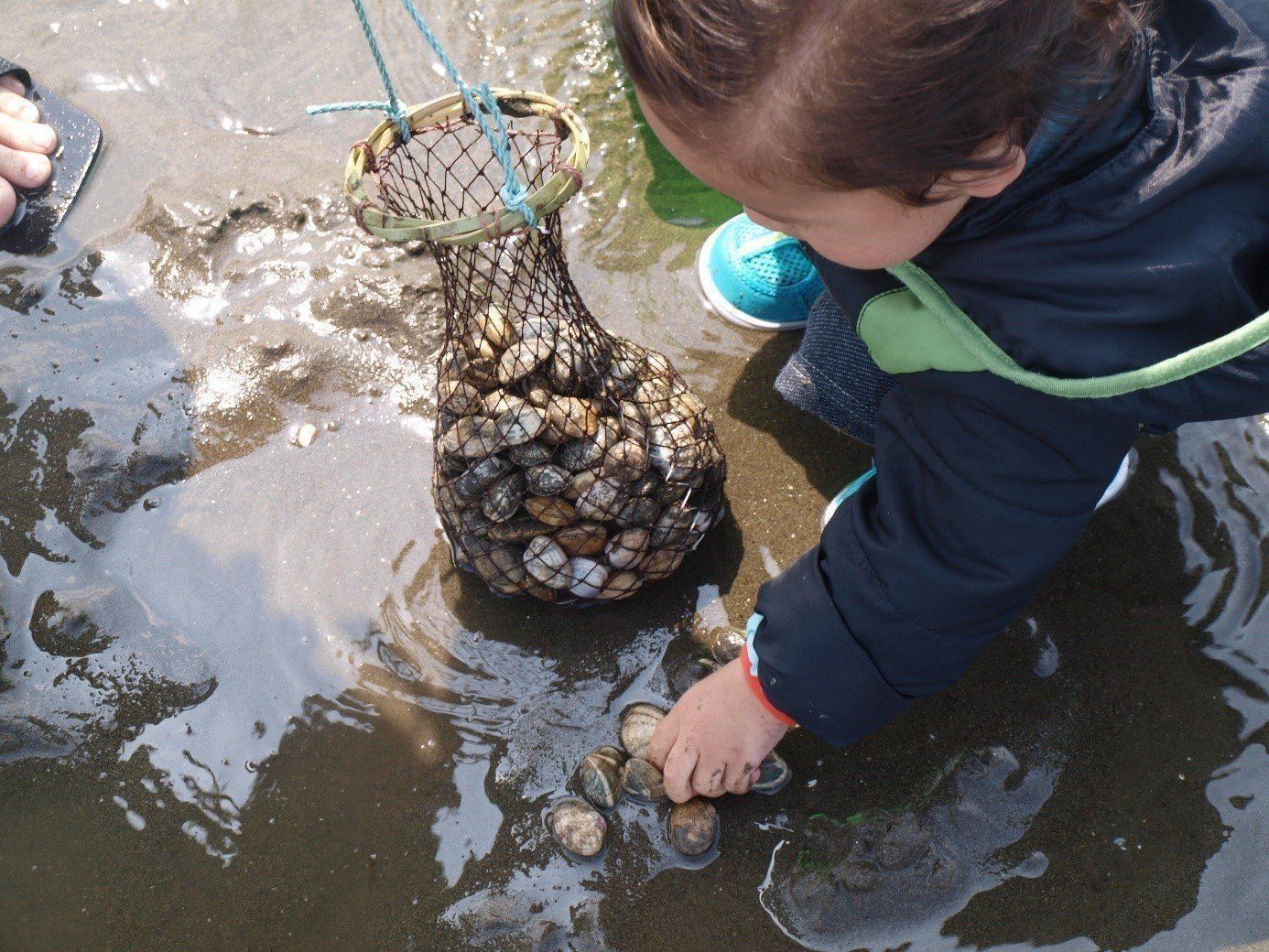 とはいえ、3月・4月はまだ肌寒いこともあり、潮干狩りはGWの頃が一番人気です。潮干狩りに行くときは、事前の調査、準備が欠かせません。潮の満ち引きが日によって変わるため、事前に干潮時間を確認しておくことが重要です。親子でおいしい貝をたくさん見つけてくださいね。