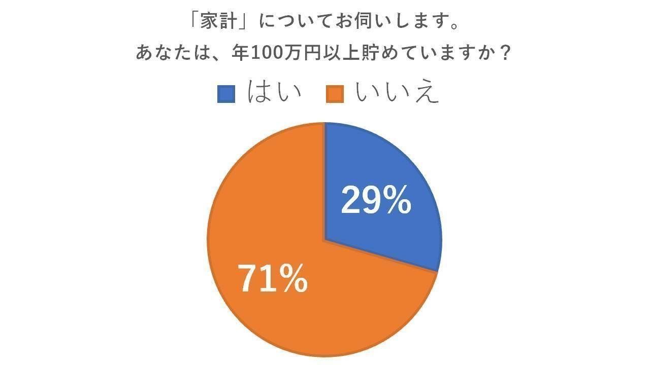 家計について、年100万円以上貯めているか?の質問に、「はい」と答えた人は全体の29.4%でした。