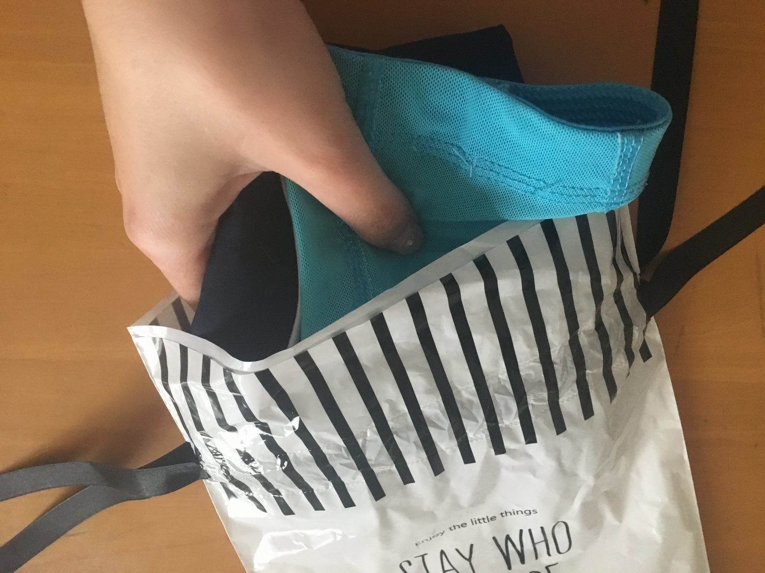 子どもの水着セット、調理エプロン&三角巾などをいっしょに入れておくと、便利ですね。もちろん借りたお洋服などの返却にも使えます。