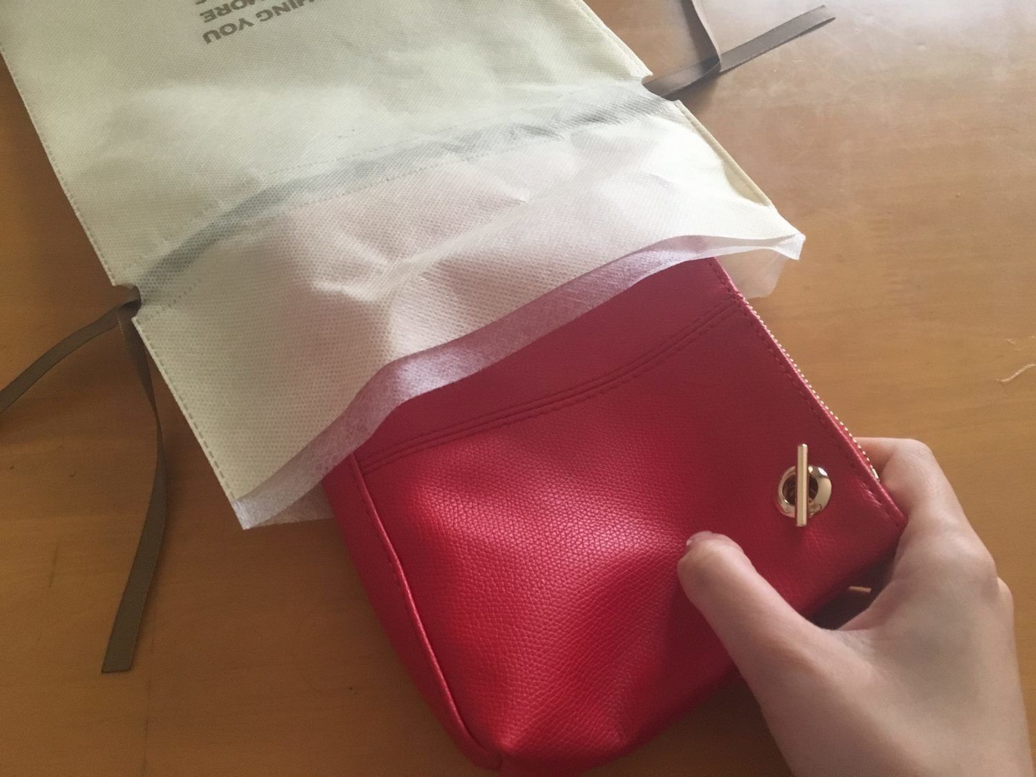 2枚仕立ての薄い布で、ある程度の通気性もあり、こちらはクローゼット保管に向いています。小さなバッグや長財布、あまり履く機会がないスリッパの保管などに使えます。ファー小物やストールなどを保管するときは、いっしょに防虫剤を1つ入れておくとよいですね。