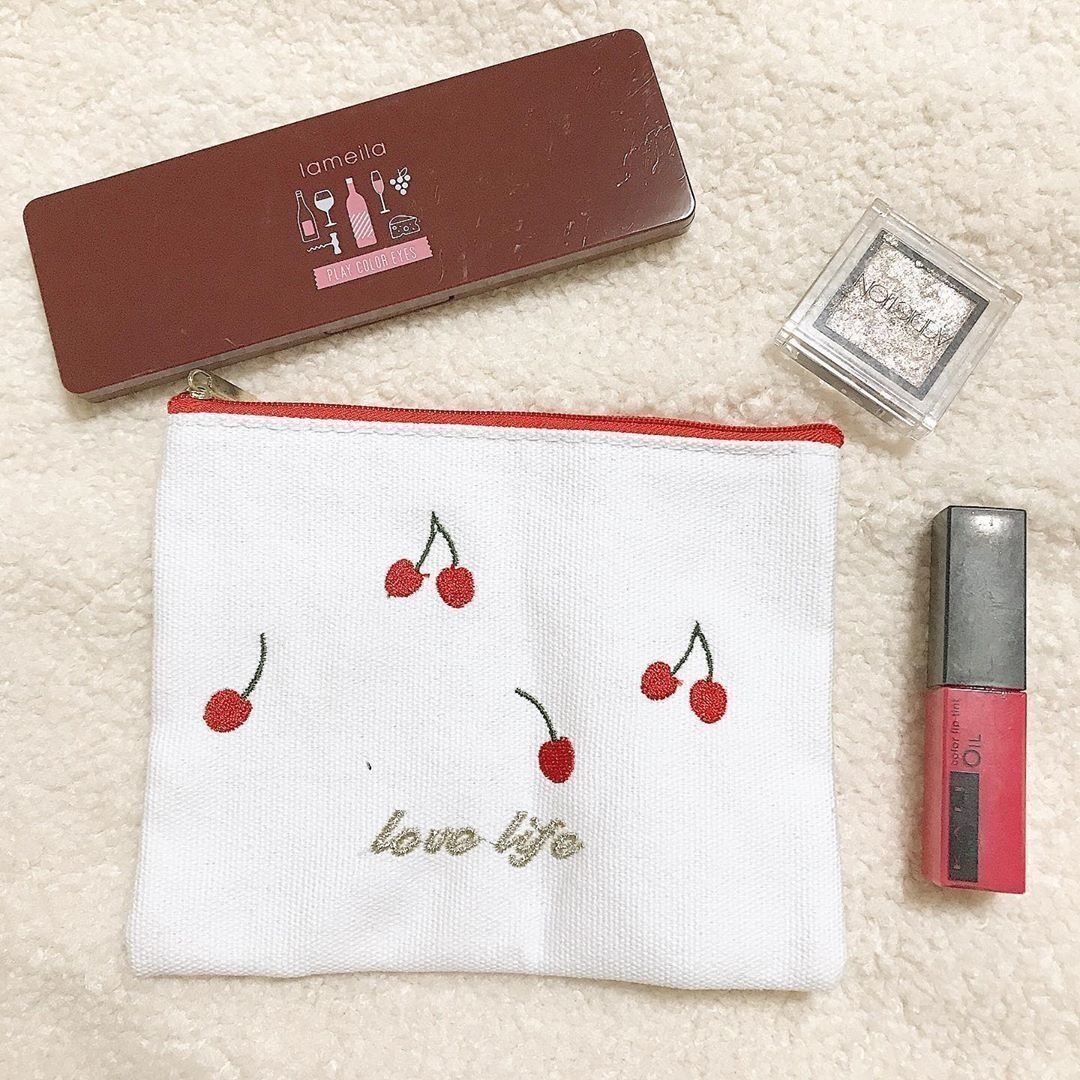 真っ白でさわやかな生地にさくらんぼが刺繍された、かわいらしいポーチ。ゴールドの刺繍もアクセントとなり、甘くなりすぎないデザイン。高見えするので、使用頻度の高いものを入れておくのもよさそうですね。