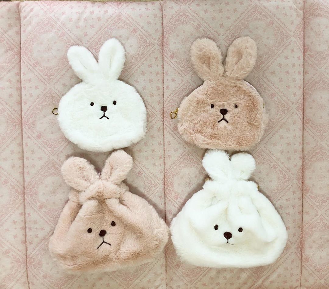 モフモフ素材のウサギポーチ。ファスナーつきタイプと、巾着タイプの2種類から選ぶことができます。カバンに入っているとテンションがあがってしまいそうなかわいらしさです!