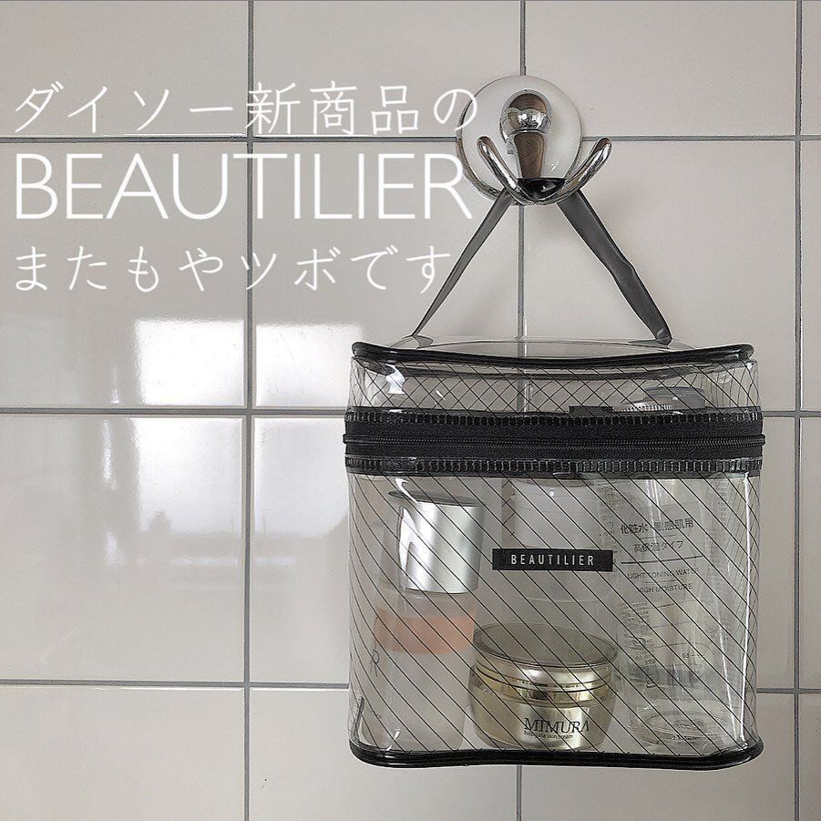 無印良品のマチつきクリアケースにそっくりの、ダイソーのビニールポーチ。お気に入りのコスメを見せる収納にしたり、スパポーチにしたりするのもおすすめ!