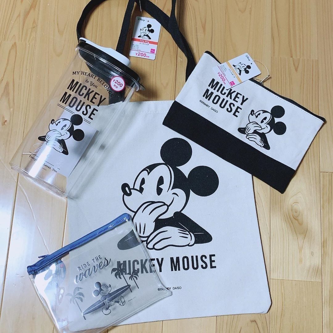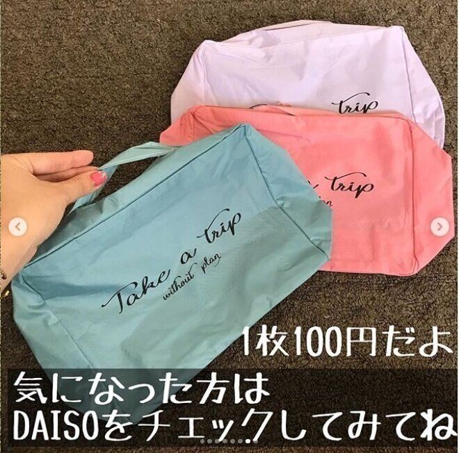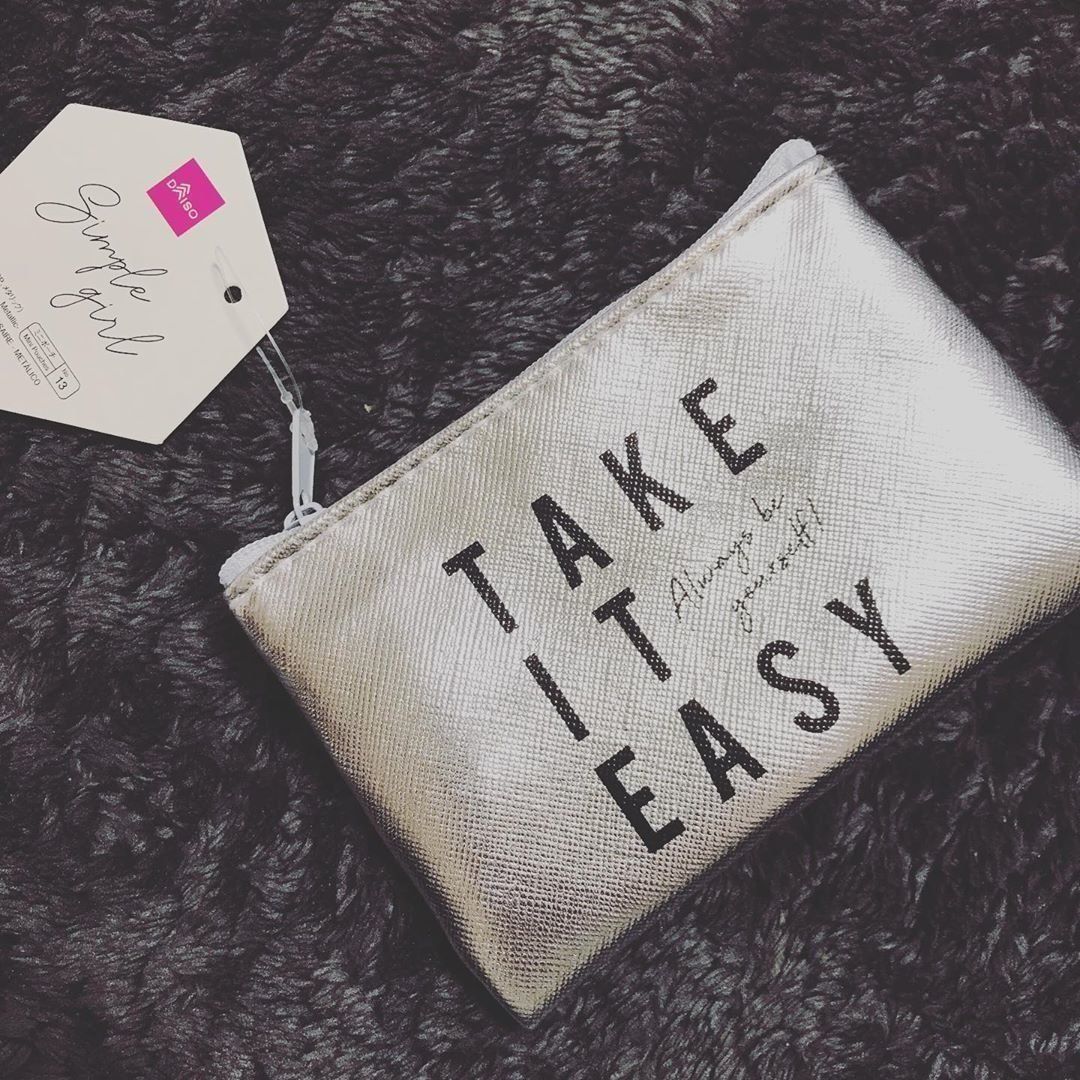 こちらのタイポグラフィックデザインのポーチ&トートバッグもダイソーで購入できるなんて驚きです。トートの持ち手裏はゴールドの裏地が使われていることでより高級感を感じさせる高コスパアイテムとなっています。