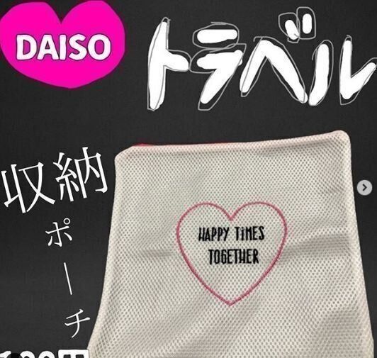 こちらはダイソーのメッシュポーチ。大きめサイズもあり、たっぷり入るので便利ですね。メイク道具なども収納でき、メッシュになっているのでどこに何が入っているかわかりやすいのも魅力です。