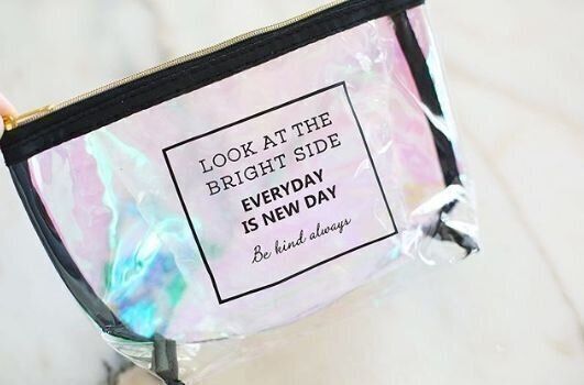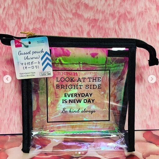 ただのクリアではなく、オーロラがキレイなマチつきポーチ。ブラックのファスナーとフチがアクセントとなり、お気に入りのメイク道具を入れると映えること間違いなしです。