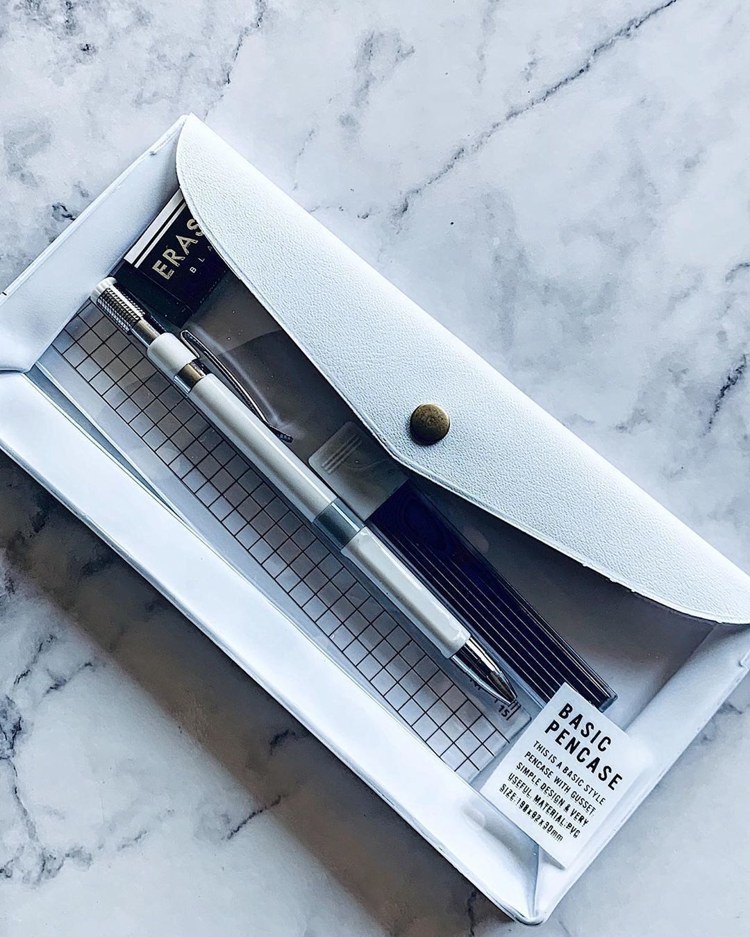 モノトーンブームで、ペンケースにもシンプルなホワイトが登場!英字タグがついたスタイリッシュなデザインは、大人っぽい雰囲気が好きな人におすすめです。
