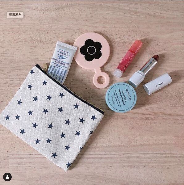マチなしミニポーチは、小さめバッグに忍ばせるのにぴったり♪ネイビーの星柄は、男女問わず人気のデザインです!