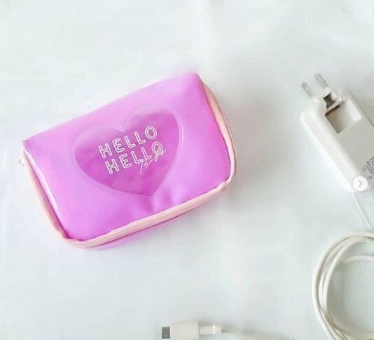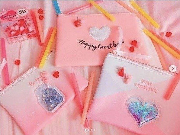 ハートの部分が透明で、中に何が入っているか見やすいピンクのかわいらしいポーチ。ファスナーも広くついているので、開けやすく、中のものが取り出しやすくなっています。充電器やコードなどを入れるのにはちょうどよいですね。