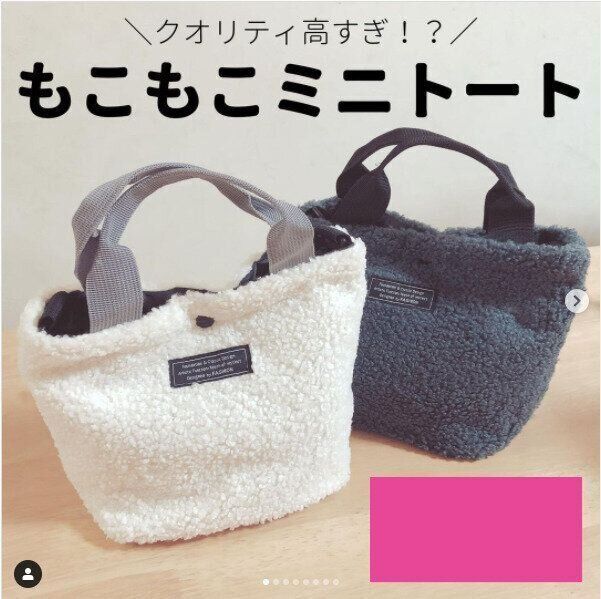 こちらのボア素材でできたミニトートバッグはお値段たったの200円と高コスパ!取り外し可能で便利なストラップつきでちょっとしたお出かけの際にも便利なサイズです。