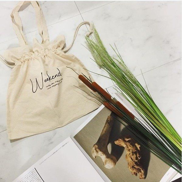 雑誌とのコラボアイテムも人気の商品。シンプルでおしゃれなデザインが人気のポイントです。チャックつきタイプと巾着タイプの2種類が販売されています。