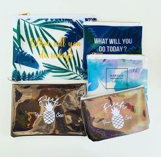 ダイソーには、夏らしいポーチもそろっています。南国を思わせるイラストのポーチやパイナップルのイラスト、涼し気なブルーなどさまざま。大きさ、柄、バリエーションも豊富なのでお気に入りを見つけてくださいね。