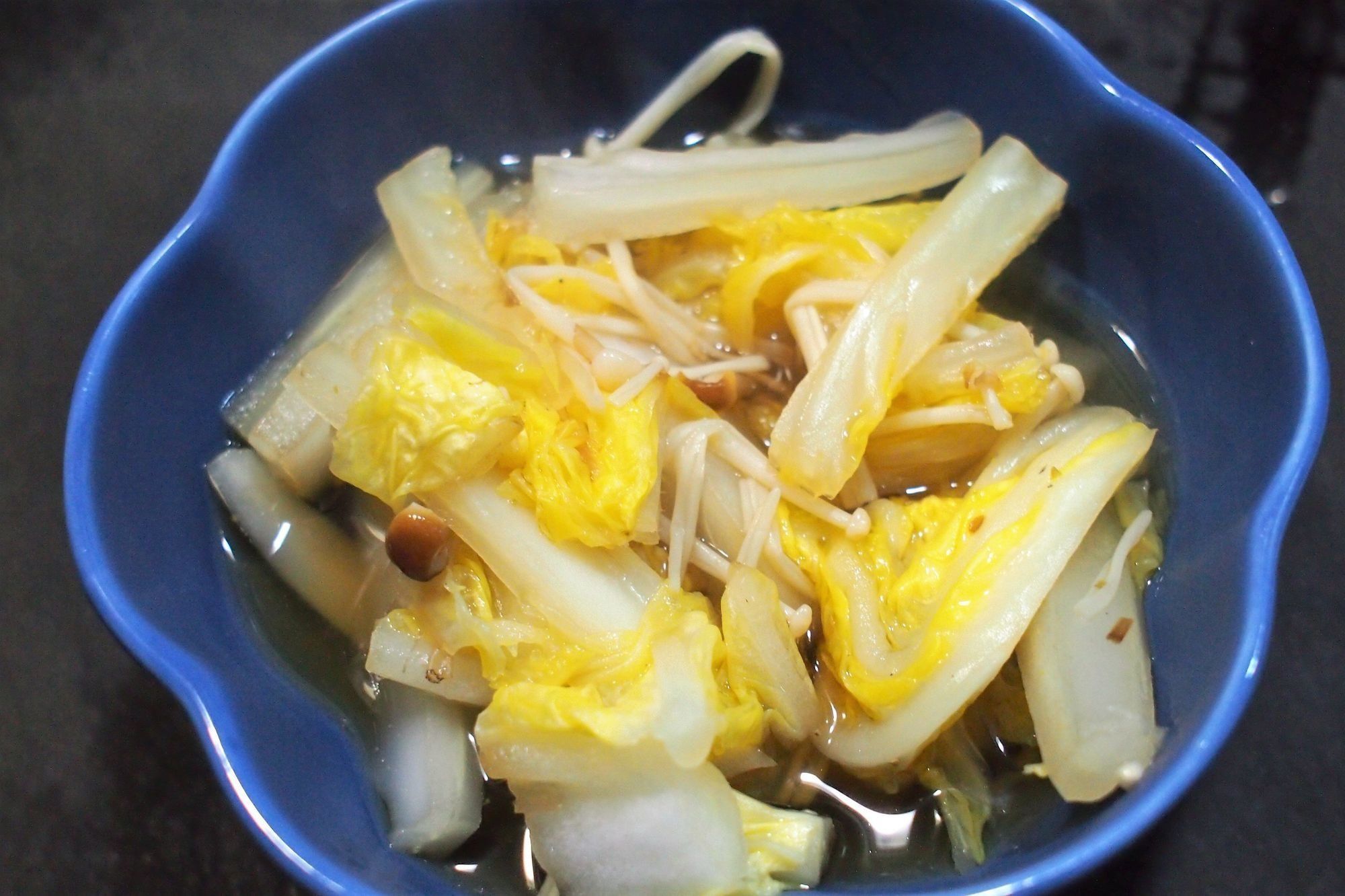 こちらも近所にある居酒屋の女将に教えてもらった一品。鍋の具材で白菜とえのきがあまってしまった……と伝えたところ、教えられた料理です。
