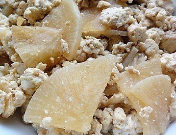 フライパンにサラダ油を入れ、いちょう切りにした大根を炒めます。火が通ったら豆腐を入れてつぶします。醤油、お酒、みりんなどで味をととのえ、水分を飛ばせば出来上がり。素朴な味わいに仕上がります。
