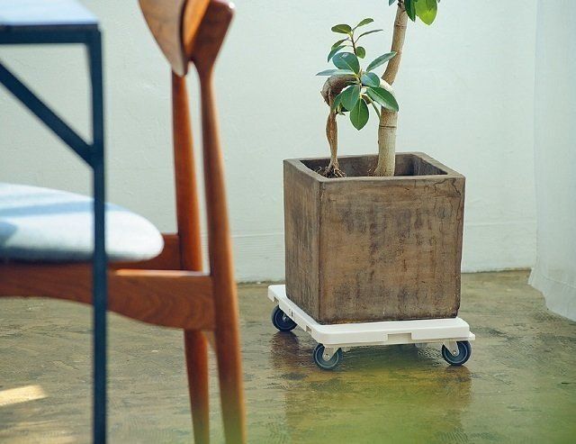 頑丈なキャスターつきで、大きな観葉植物や重いケースなどをのせてラクに動かせる便利アイテムです。重い物もサッと動かせるから、掃除や片づけが断然スムーズに。耐荷重は80㎏。押し入れやクローゼットの収納に使っても便利ですね。
