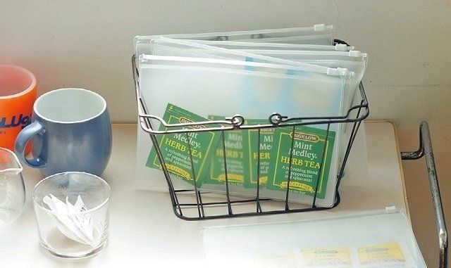引き出し内でごちゃつきがちなカメラ、充電器、コード類、薬などを1アイテムずつしまうのにもおすすめです。ほこりや湿気も防止できます。