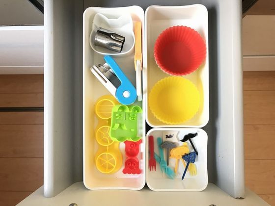 好きなサイズを1個ずつ購入できるので、ほとんどの引き出しにマッチしてくれます!細々した子どものお弁当グッズをしまっておくのにも便利。