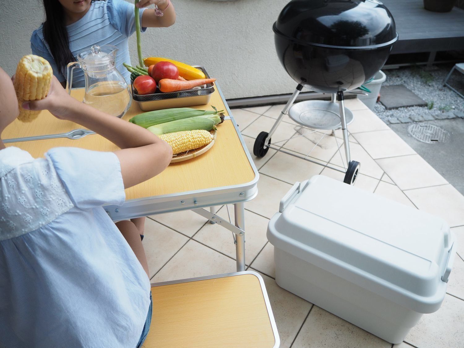 頑丈かつ密閉性も高いので、屋外での利用もおすすめ。たとえば、このボックスにキャンプグッズを入れてアウトドアシーンで活用。先ほどの防災グッズ食品や消耗品の点検を兼ねて、おうちや近所などでバーベキューをするのもいいですね。