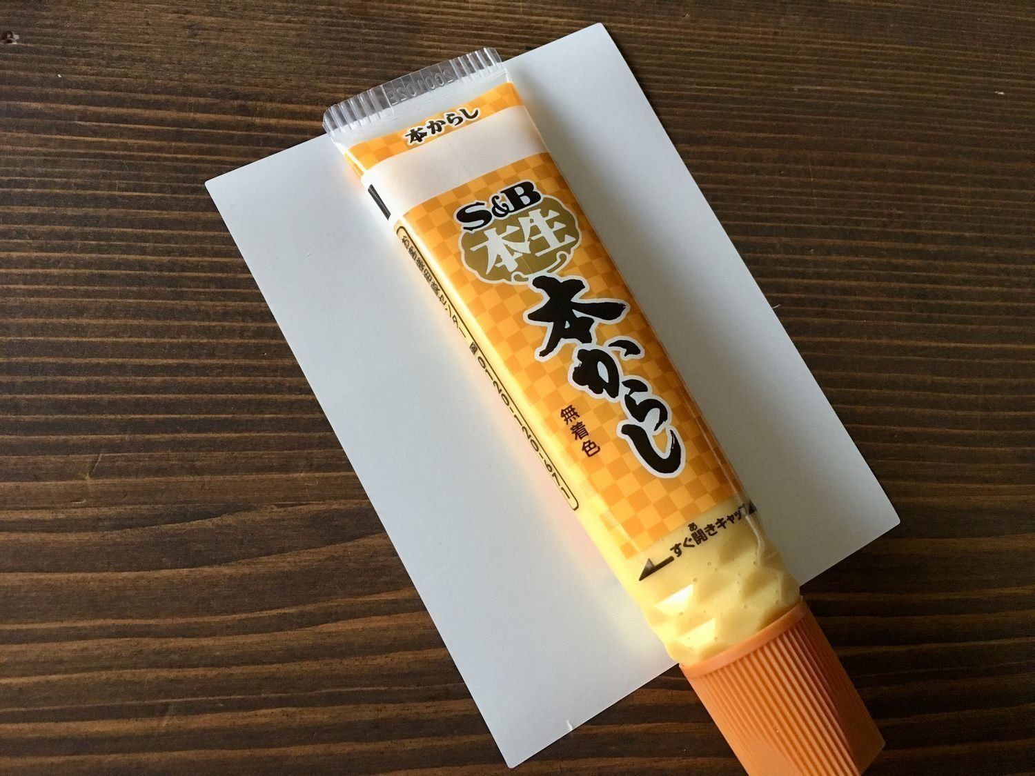 使い方はとってもカンタン。まずは薬味のチューブ本体に、ベースとなるシールを貼ります。これだけでも、見た目がとてもスッキリしますね。