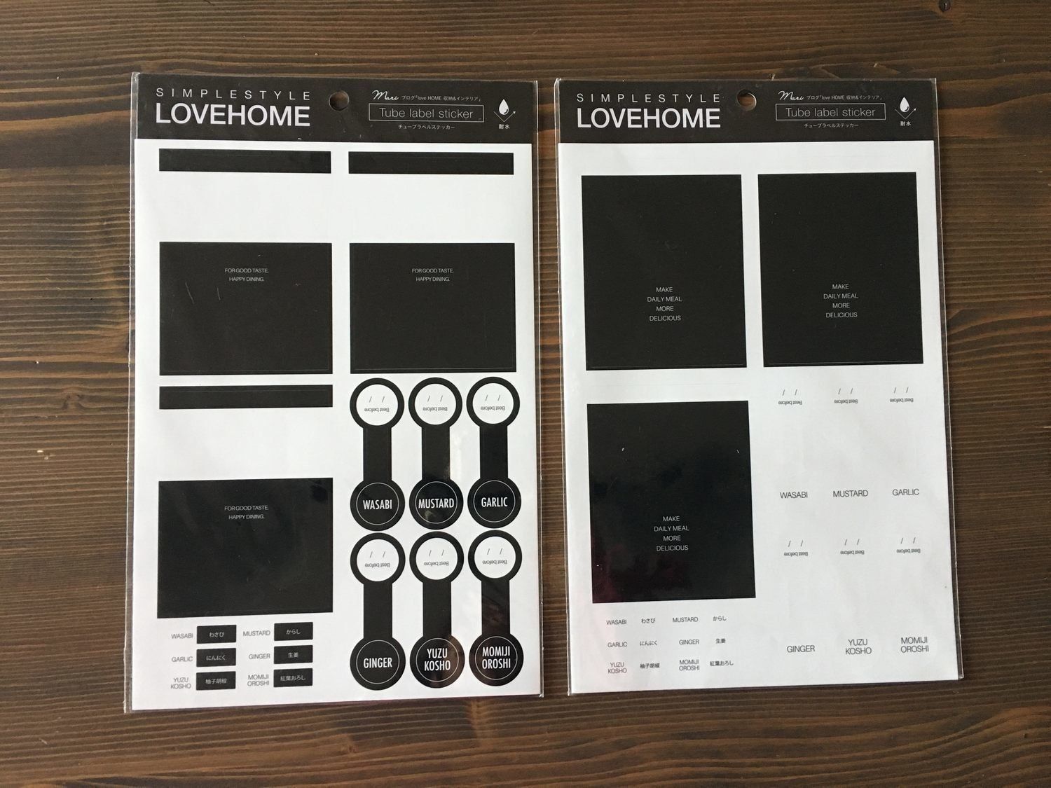 キャンドゥの「チューブラベルステッカー」(価格100円/1シート)はベース色が黒、白の2種類用意されており、好みに合わせて選ぶことが可能。今回は黒ベースのステッカーをチョイスしてみました。