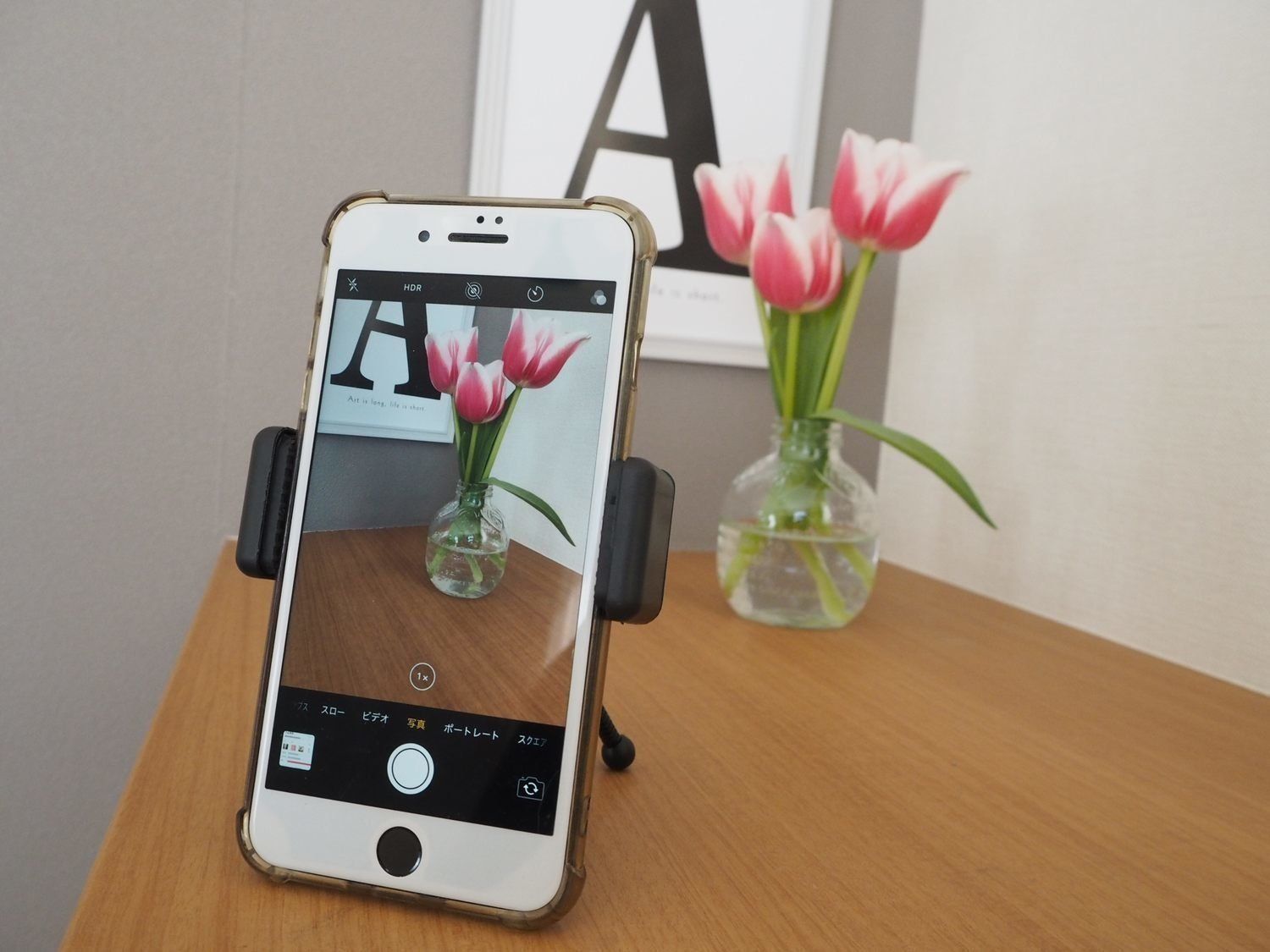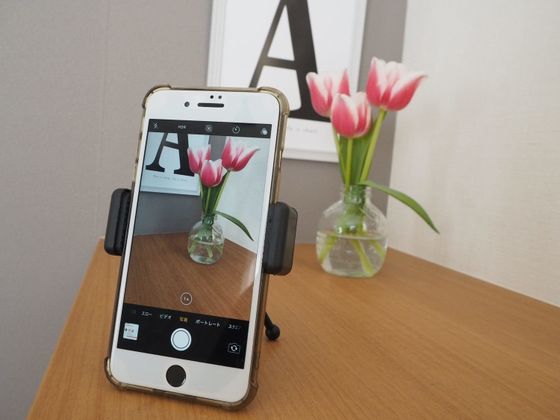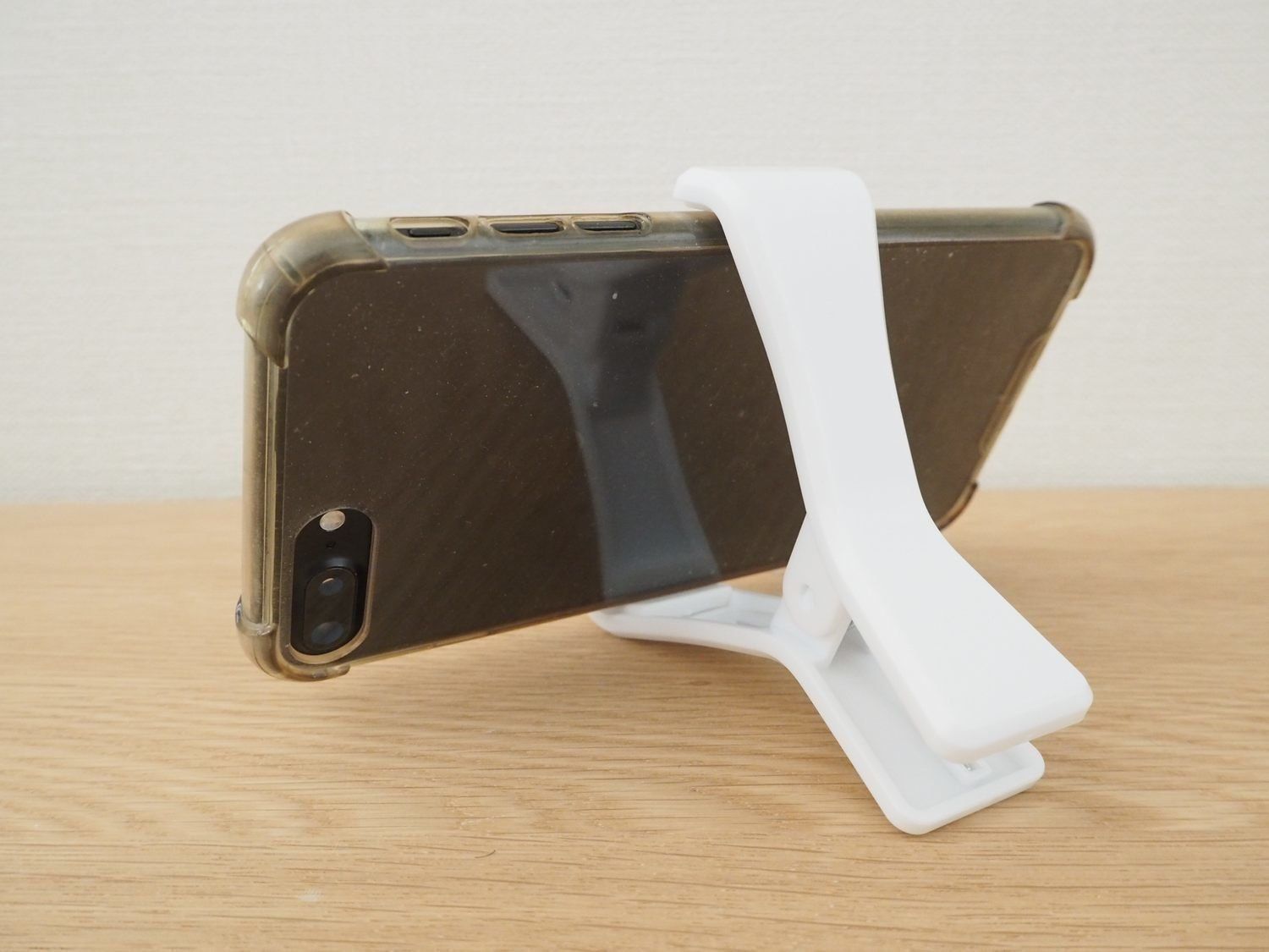 なんとスマホをはさむことによって自立できるようになるアイテム。スマホをはさむところも滑り止めのゴムがついていて、ずれる心配もなし!動画などを見たいときに便利です。iPhone7 Plusの大きさでもはさむことができました。
