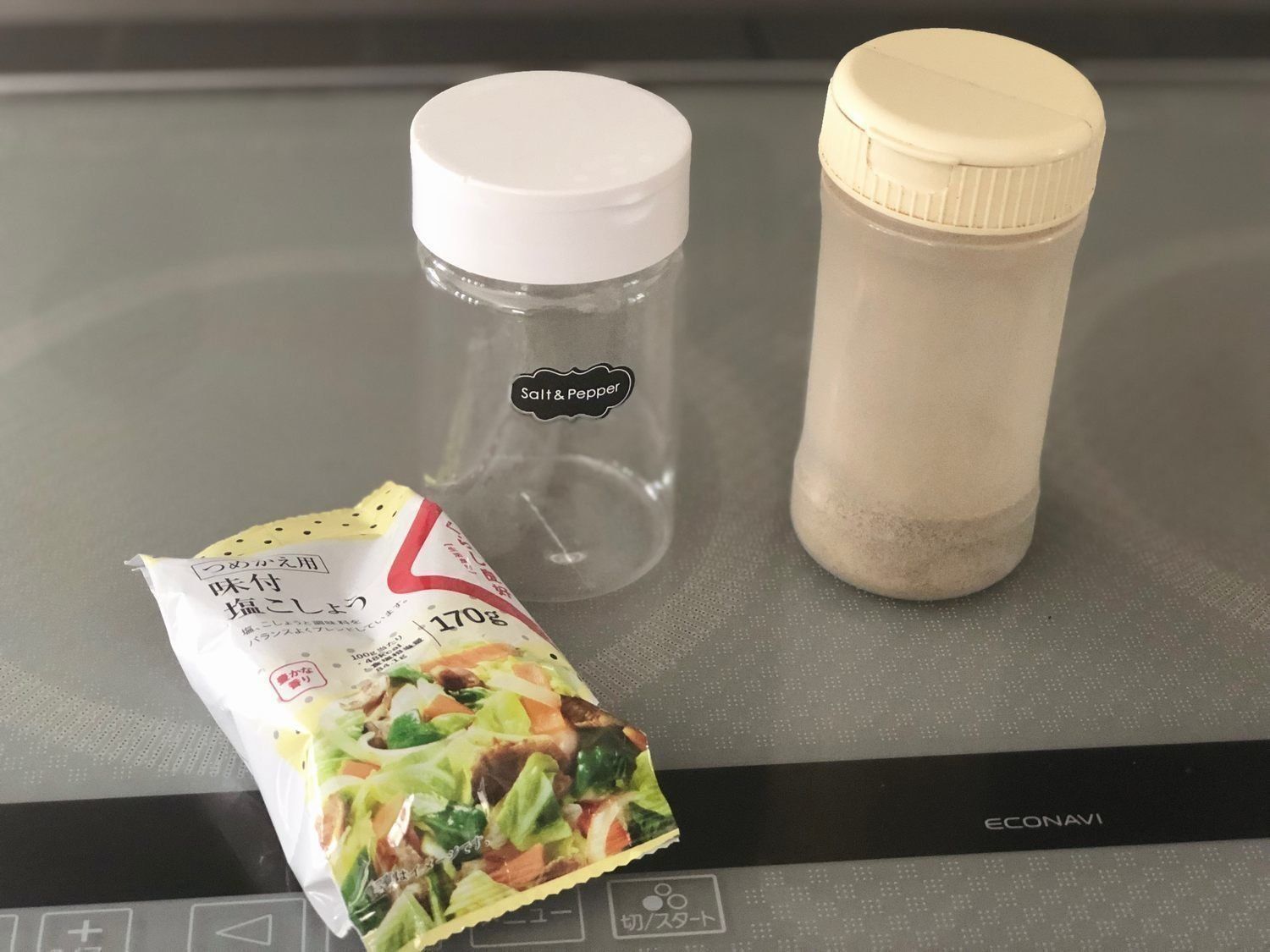粉モノや調味料でまわりや調理器具を汚さず楽々に調理が行えます。100均の調味料入れで毎日のお料理をもっと楽に簡単に!