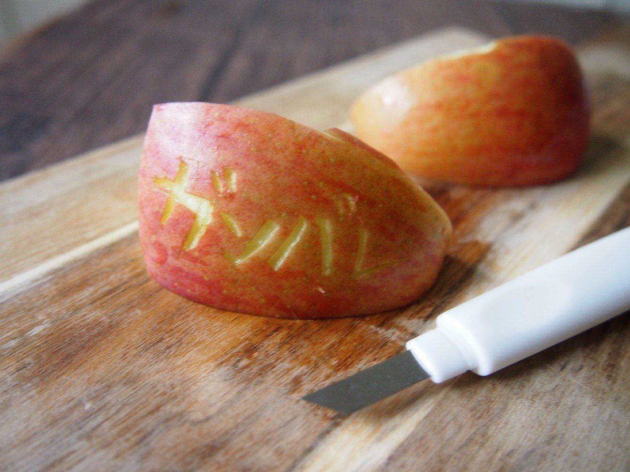 クッキングカッターを使って、野菜や果物にメッセージが入れるのも◎。運動会のときなどに応援のメッセージを入れると、子どもも喜んでくれること間違いなし!