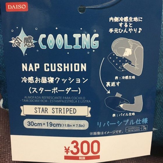 価格は300円ですが、真夏に心地よいお昼寝タイムがすごせます。「冷感お昼寝クッション」は、わたしのお昼寝タイムに欠かせないグッズになってしまいました。