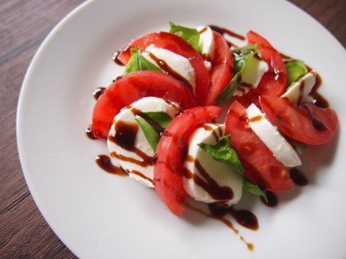 とろっとした酸味のある「バルサミコ醤油」を、カプレーゼにかけるだけで見た目もぐっとおしゃれになるし、いつものカプレーゼとはひと味違ったおいしさに!おもてなしやアペロの一品にぴったり。