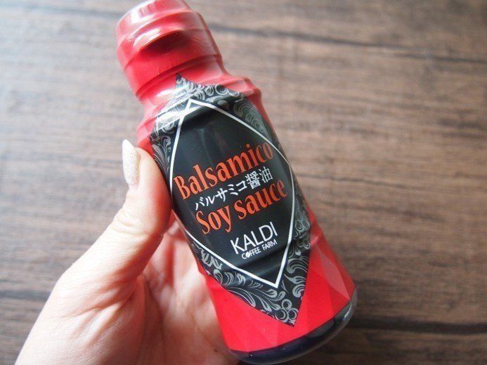 カルディの「バルサミコ醤油」(税込367円)は、しっかり煮詰めたようなコクと甘みがあり、まろやかな酸味がクオリティーの高さを感じます。かけるだけでいつもの料理がひと味変わっておいしくなる万能調味料です。シックなラベルも◎。