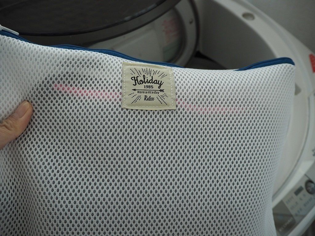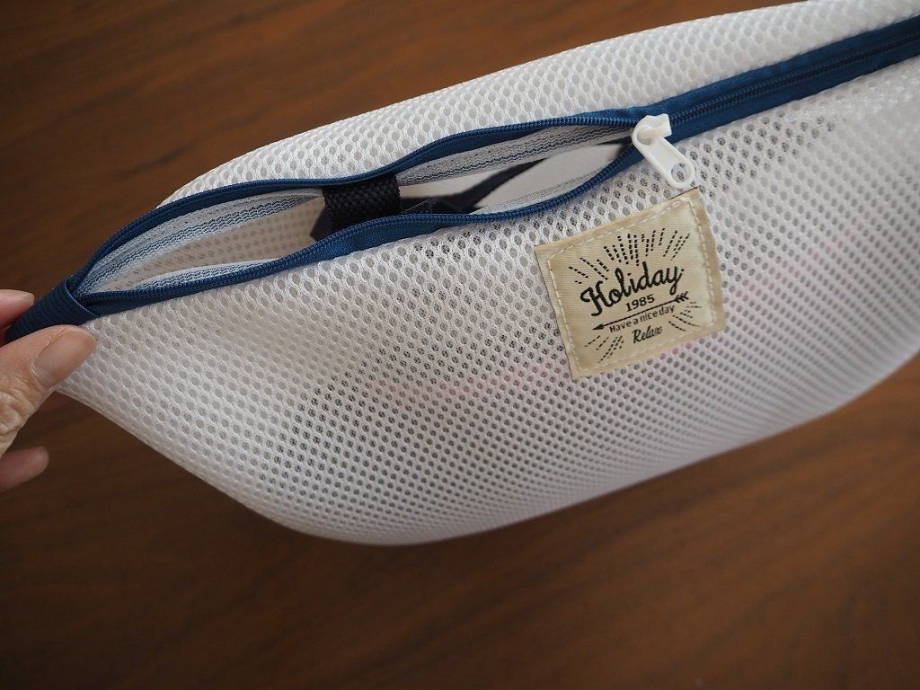 取っ手は、ほかの洗濯物と絡まらないように内側に入れられる仕様になっています。持って帰ってきたら、ジッパーを閉めて洗濯機にそのままイン!