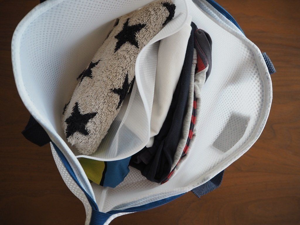 容量はフェイスタオル、上下の着替えを入れてちょうど良いくらいのサイズ感。