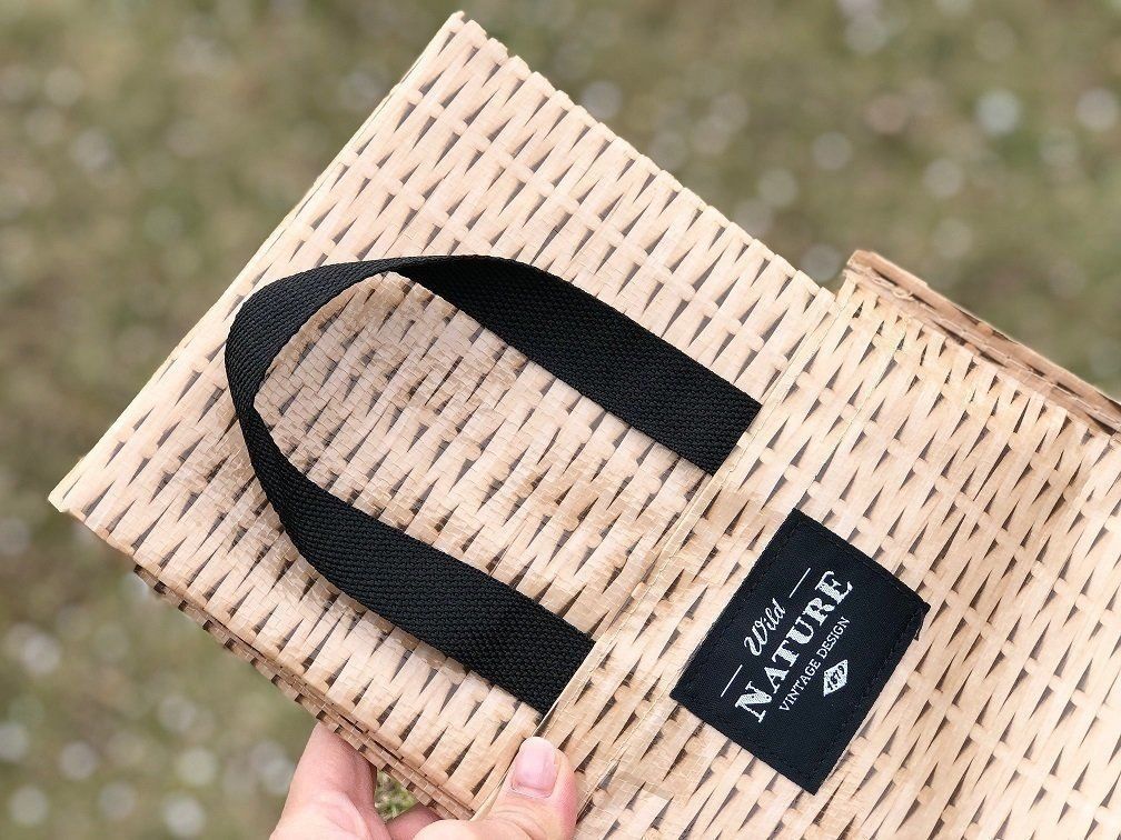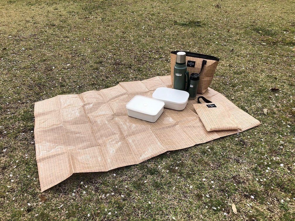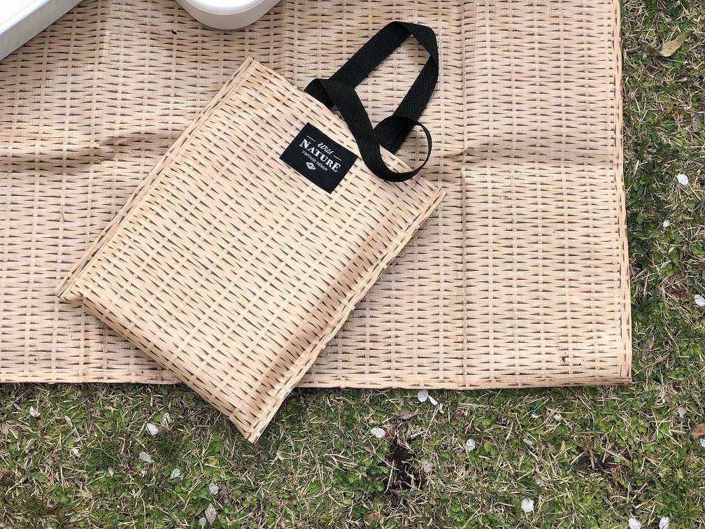 クーラーバッグと同じく、かごバッグ風デザインのレジャーシートもカインズで買えます。こちらも298円(税込)とお手頃価格!