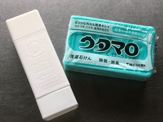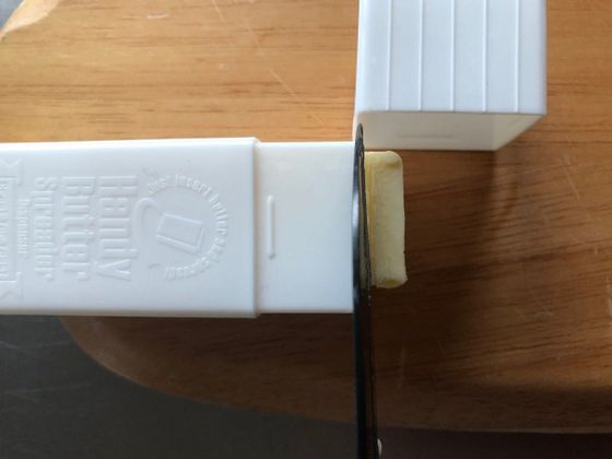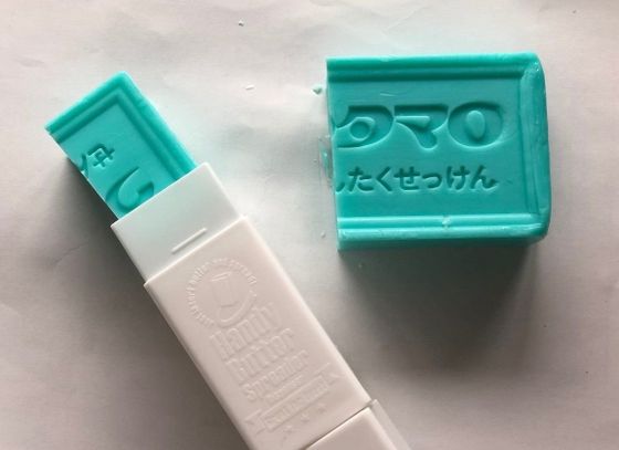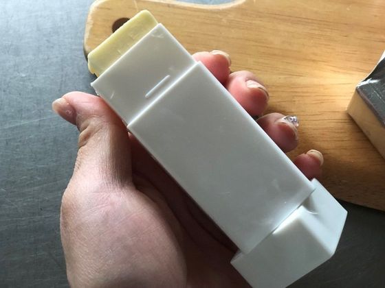 シンプルな構造なので、“バター以外”にも活用するのもおすすめ。たとえば、汚れものに抜群の威力発揮するウタマロせっけん。横長に置き、縦に3分割した1つをこの「バタースティック」にセット。