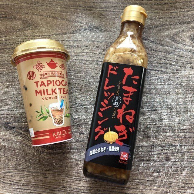 tarokoさんがカルディでよく購入するドレッシングは、たまねぎドレッシングとサラダの旨だれだといいます。カルディのドレッシングはどれもおいしいのですが、その中でもこの2つはとくにおいしく、tarokoさん家ではゆるぎない味として殿堂入りしたようです。話題のタピオカミルクティーも購入したようですよ。