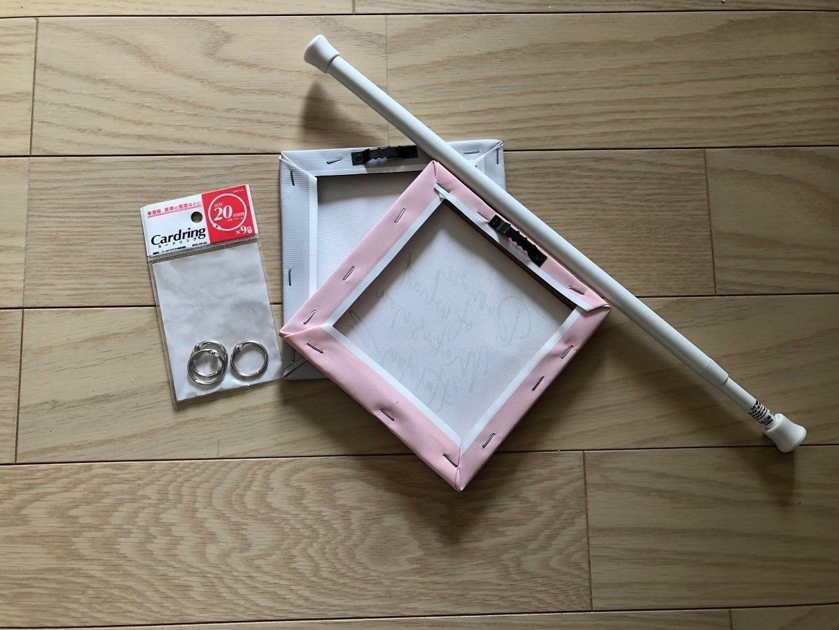 ごちゃごちゃしたものをすっきり隠して収納したいかたには、100均などで手に入るカードリングと、パネルを組み合わせた目隠し収納扉がおすすめ。