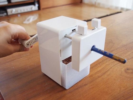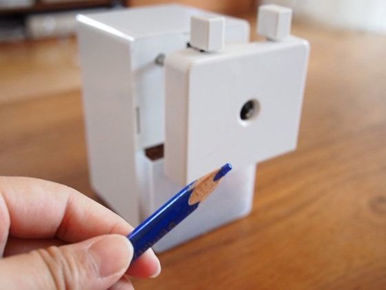 使うときは、中央の取っ手部分をぎゅっとはさみ、削り口を引き出し、削り穴に鉛筆を挿入します。ガリガリと削ると、どんどん削り口部分が縮んでいき、最後には動かなくなるという昔ながらの仕組みなので、操作に戸惑うこともないでしょう。