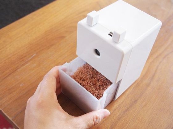 特筆すべきはやはり無駄のない、このシンプルデザイン。リビングにそっとおいてもインテリアの邪魔をせず、むしろ自分が主体となって溶け込んでいくようなデザインが魅力的です。削り心地も気になるところですが、ひとまずはこちらのルックスのよさに感動を覚えました。