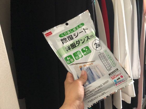 洋服ダンスやクローゼットも湿気が気になるポイント。そんなときに活用したいのが、こちらの除湿シート。幅12cm、長さ44cmと長いシートが洋服全体の湿気を取ってくれそうですよね。1袋に2枚入っていているのもお得感がUP。ちなみに、標準的なクローゼット(500L)に対して、3~4枚の利用が目安とのこと。