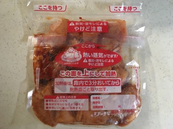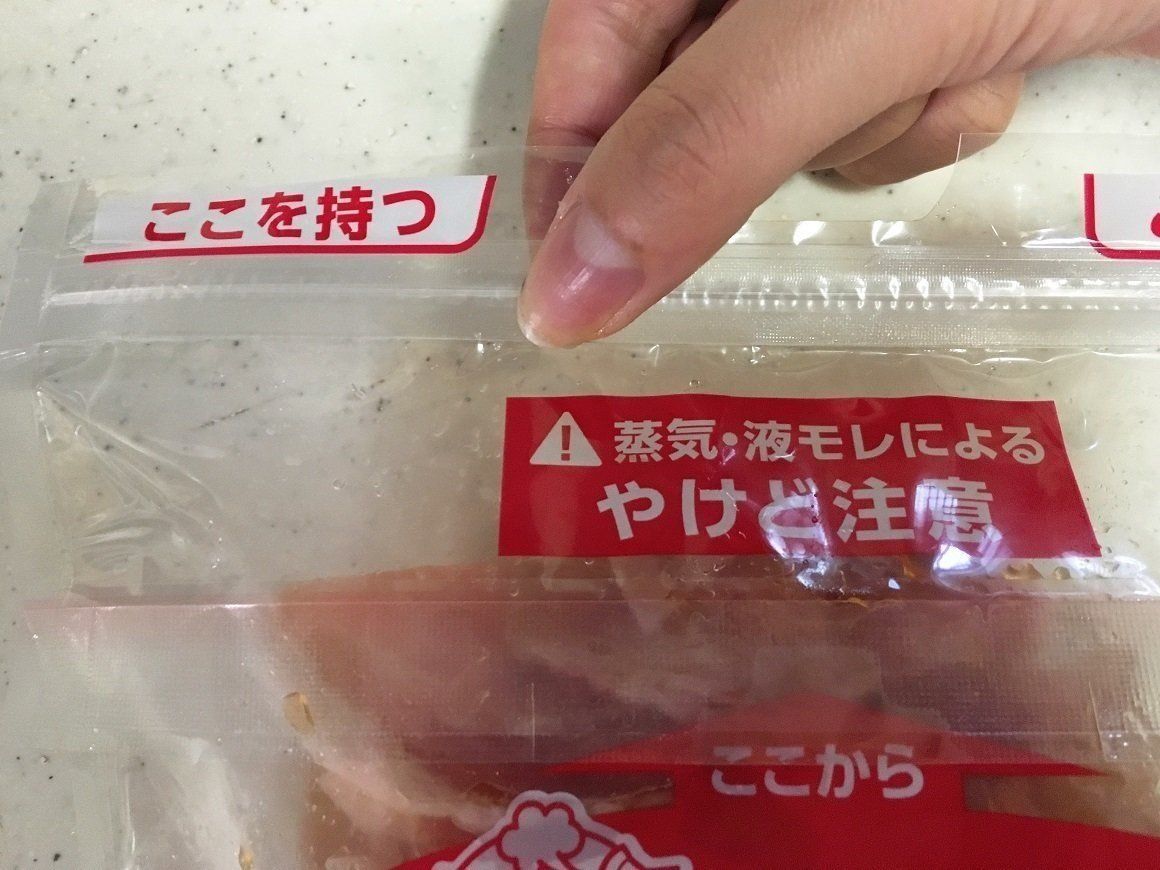 きちんとバッグの口をしめたら、電子レンジで10分加熱。この際、必ず耐熱皿のうえに袋を置くようにしましょう。加熱後は庫内で3分蒸らして、蒸気吹き出し口から出る蒸気に注意しながら開封すれば完成。
