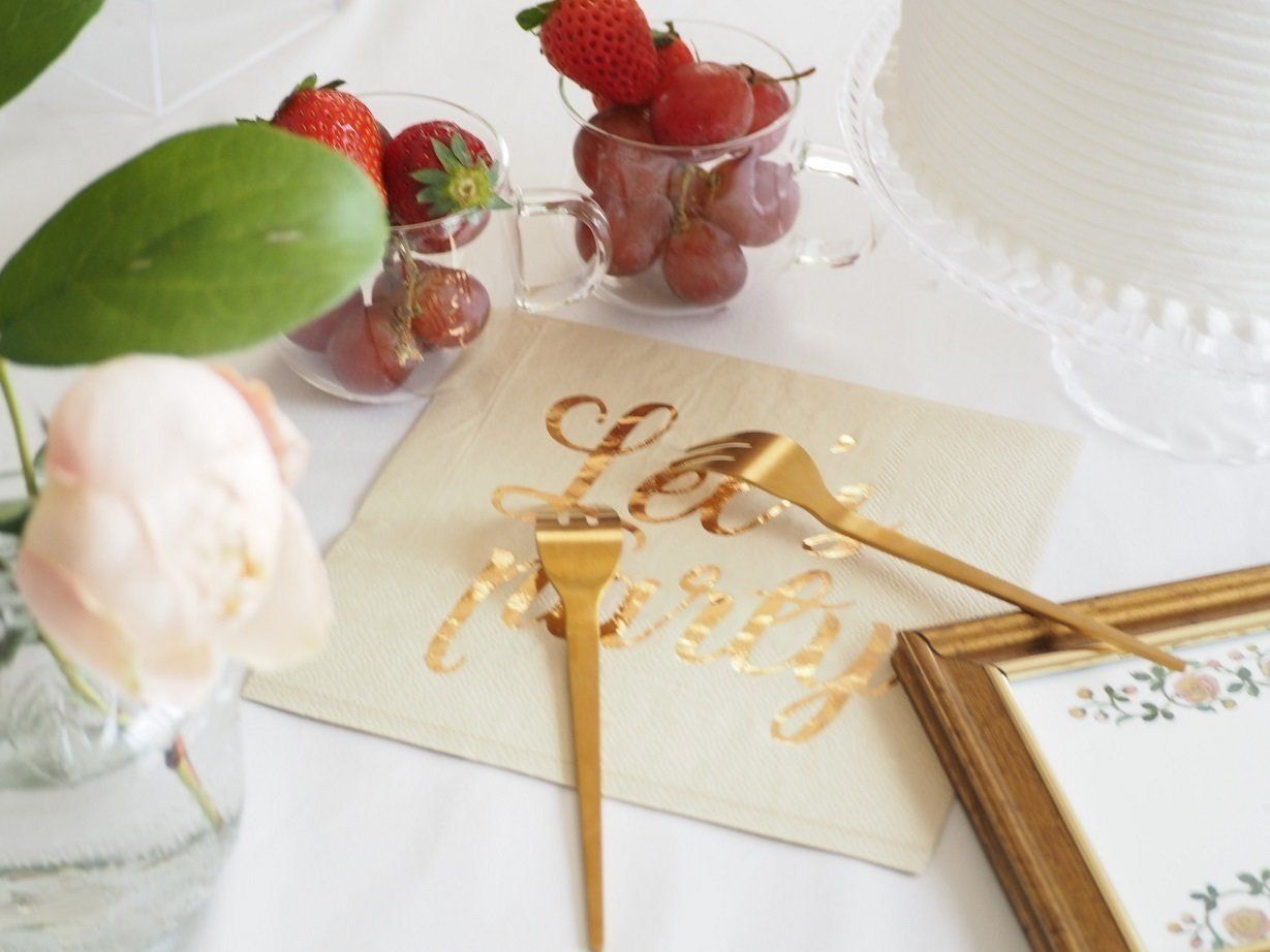 カトラリーをテーブルに直接置くのではなく、テーブルペーパーを敷いてあげるとかわいらしさもアップ♪