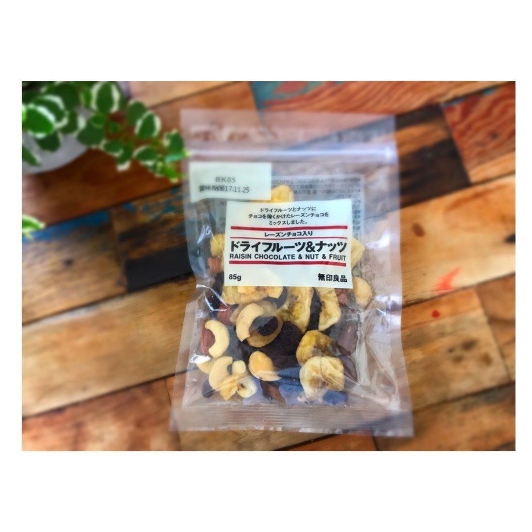 nanobonheurさんが無印良品で必ず買うものは、ドライフルーツ&ナッツだといいます。1袋250円(税込)で、美容効果が期待されているドライフルーツとナッツが同時にとれる優れもの!分量もちょうどよく、家事の合間のおやつにピッタリなのだとか。お菓子づくりにも活躍するそうですよ。